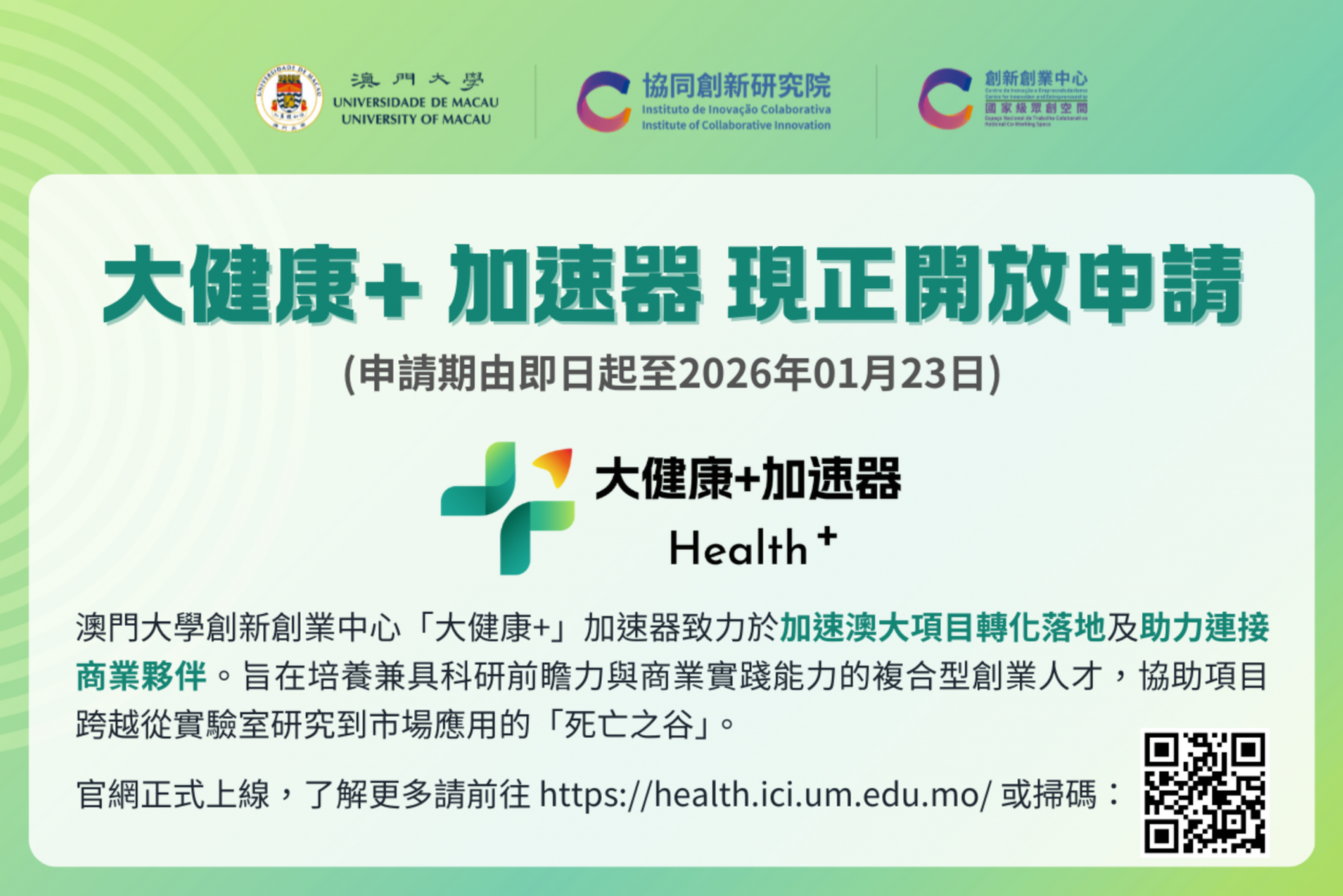【重磅】「大健康+」加速器正式開放申請——Chinese Only