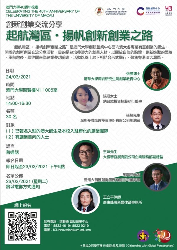 入駐期內,在任何對外之連繫中,團隊必須清晰主動交待入駐公司為 “澳門大學創新創業中心的入駐公司」”, “團隊成員為「澳門大學之教授、職員、學生或校友之身份」”, 資助來源(如有), 以及知識產權歸屬等事實,包括但不限於參加創業比賽、路演、展覽、交流、合作/投資洽談。如有違者,一經發現並查明屬實,立即終止入駐及終止發放資助,且相關人士於兩年內不得再獲入駐。 |
